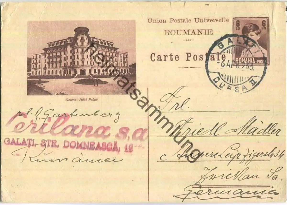 Ganzsache - Govora - Hotel Palace (E89329) gel. 1933