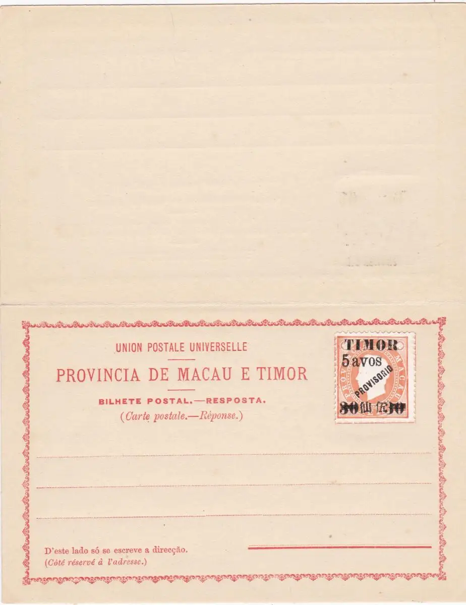 Ganzsache Timor Provincia de Macau with response; III Aa