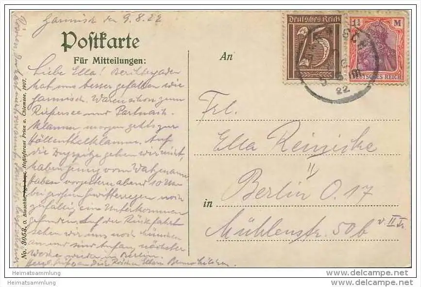 Garmisch - Panorama - Verlag O. Blaschke Prien a. Chiemsee (E10326) gel. 1922