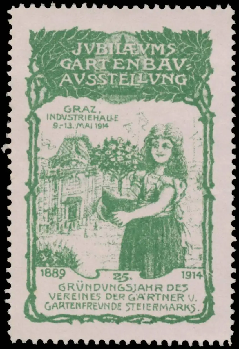 Jubiläums Gartenbauausstellung zum 25. Gründungsjahr des Vereines der Gärtner und Gratenfreunde Steiermarks, Variante 5, Größe/Zustand: 6x4 , guter Zustand, Original alte Reklamemarke die seinerzeit für die Werbung benutzt wurde