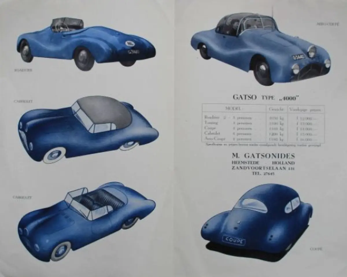 Gatso Type 4000 Modellprogramm 1948 Automobilprospekt (7892)