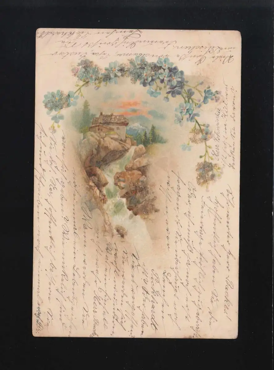 Gebirgsbach Wasserfall Vergissmeinnicht Ranke Blüten, Ruhrort 11.04.1901