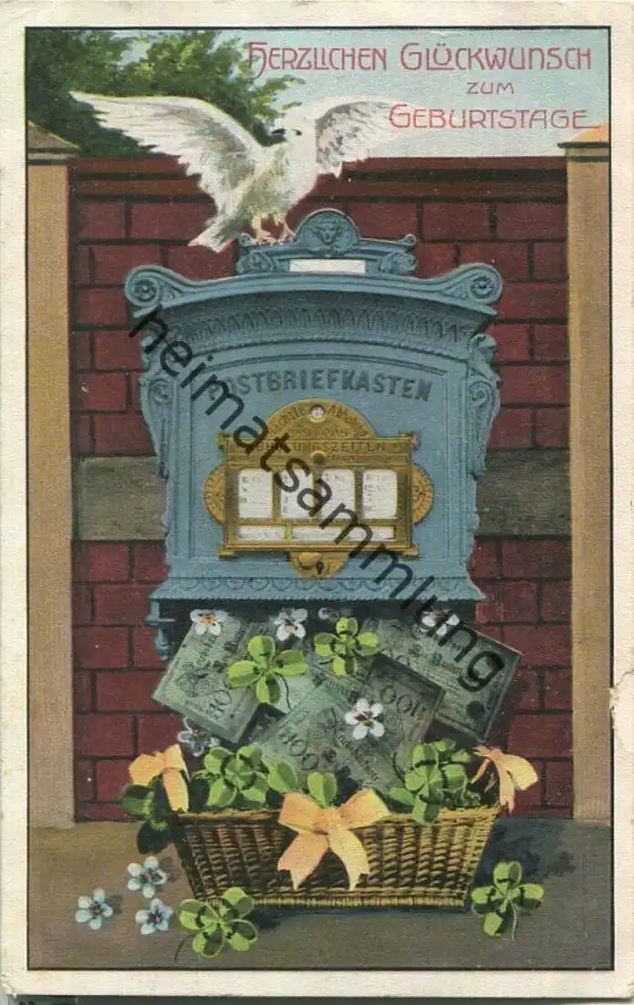 Geburtstag - Taube - Postbriefkasten - Geldscheine - Einriss im rechten Rand (G16637) gel. 1909