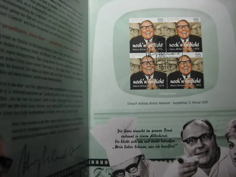 Gedenkblatt Erinnerungsblatt der Deutsche Post: 100. Geburtstag Heinz Erhardt, 2009