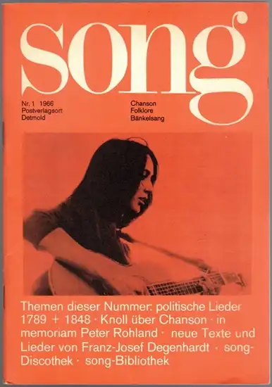 Gekeler, Rolf (Red.): song. Nr. 1, 1966. Chanson Folklore Bänkelsang. [Themen dieser Nummer: politische Lieder 1789 + 1848 - Knoll über Chanson - in momoriam Peter Rohland - neue Texte und Lieder von Franz-Josef Degenhardt - song-Discothek - song-Biblioth
