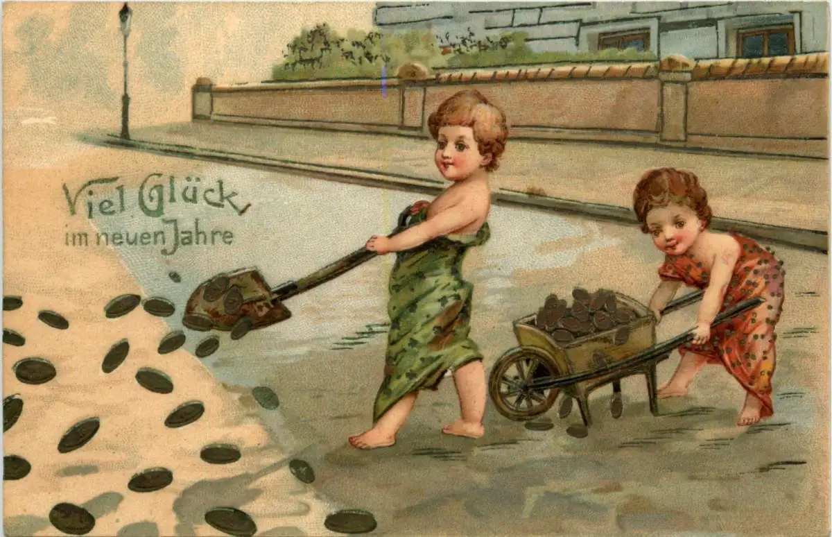 Geld auf Ansichtskarte - Neujahr -424436