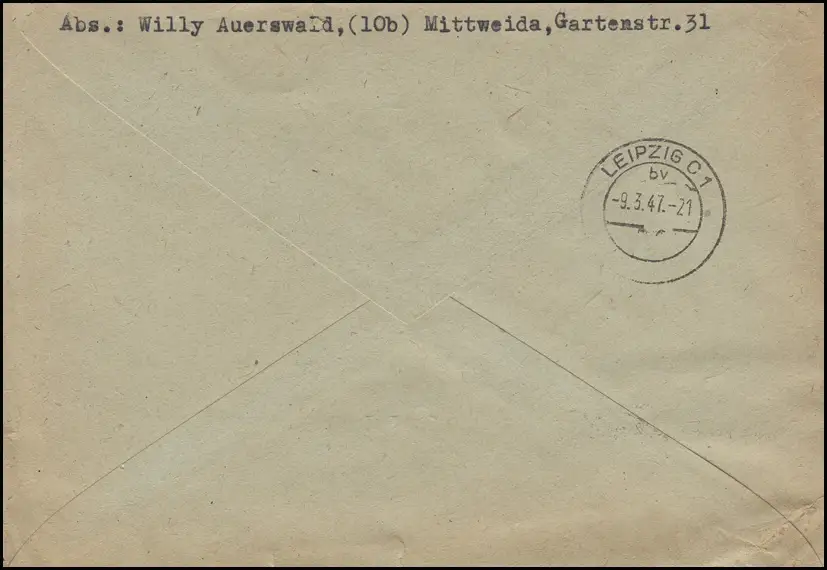 Einschreiben nach Leipzig mit Ankunftsstempel 9.3.47.