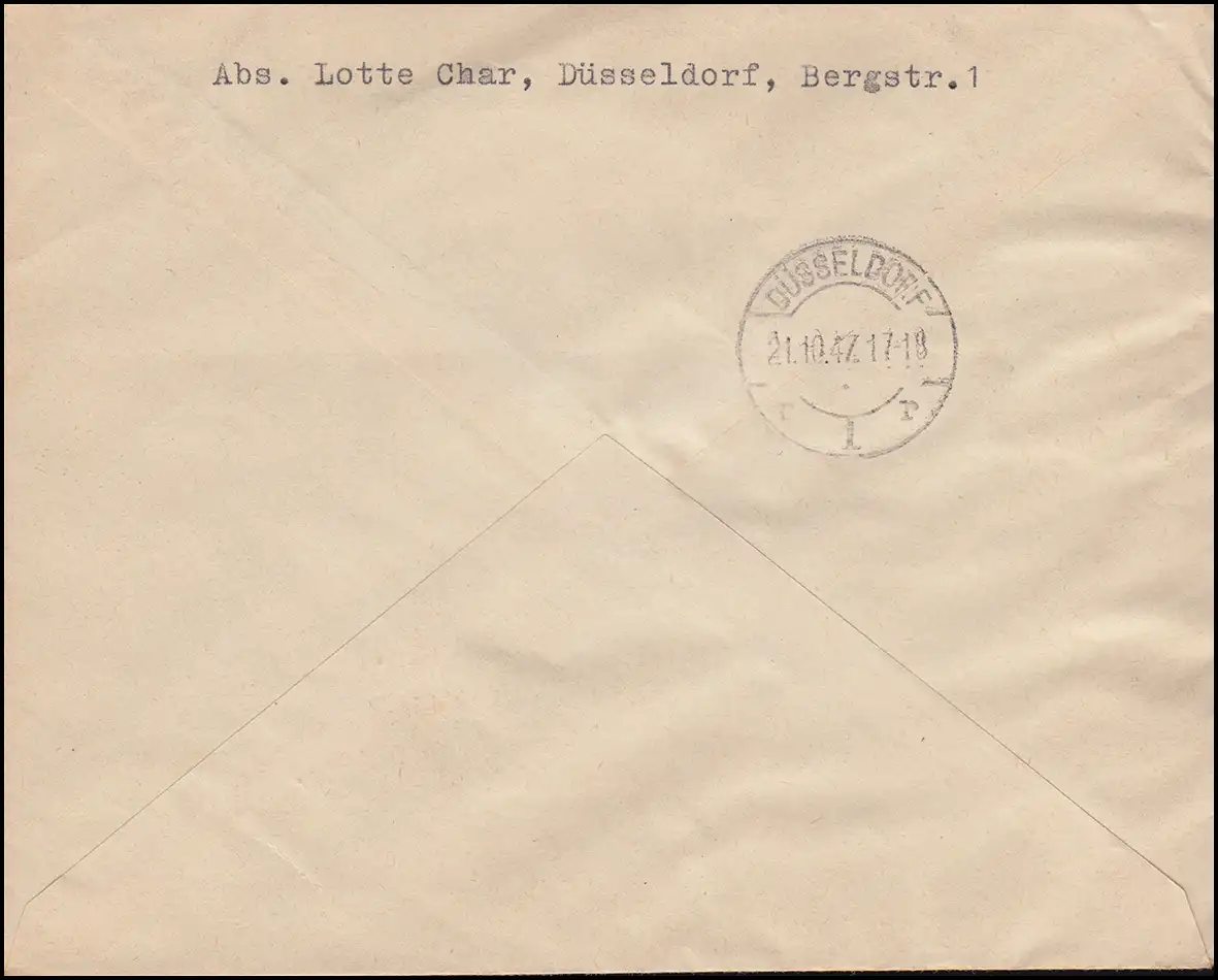 Ankunftsstempel DÜSSELDORF 21.10.47