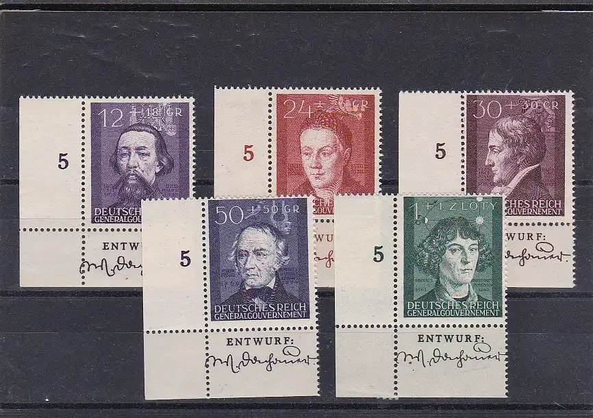Generalgouvernement (GG), MiNr. 96-100 im Eckrand Entwerfer, ** E3