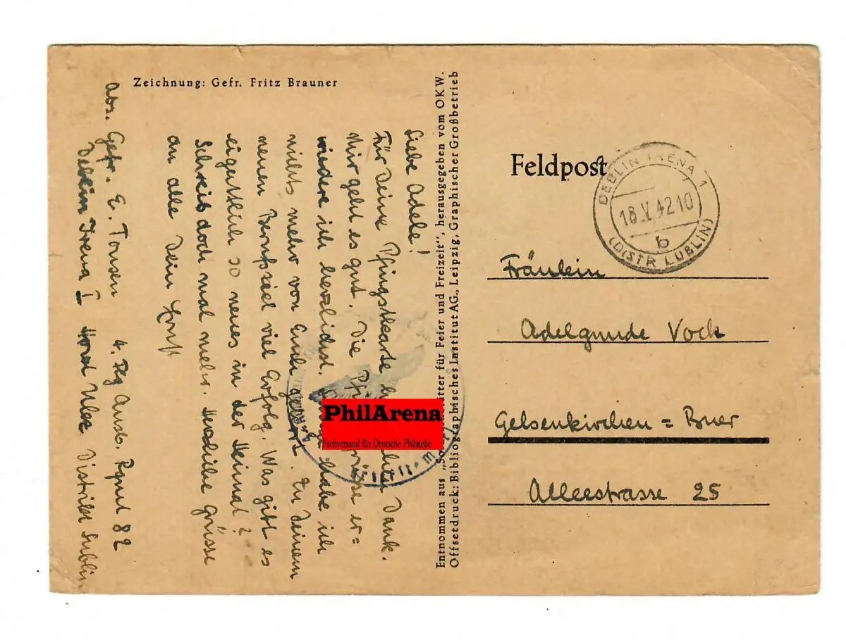 Generalgouvernement GG: Postkarte: Feldpost Deblin Irena 1942