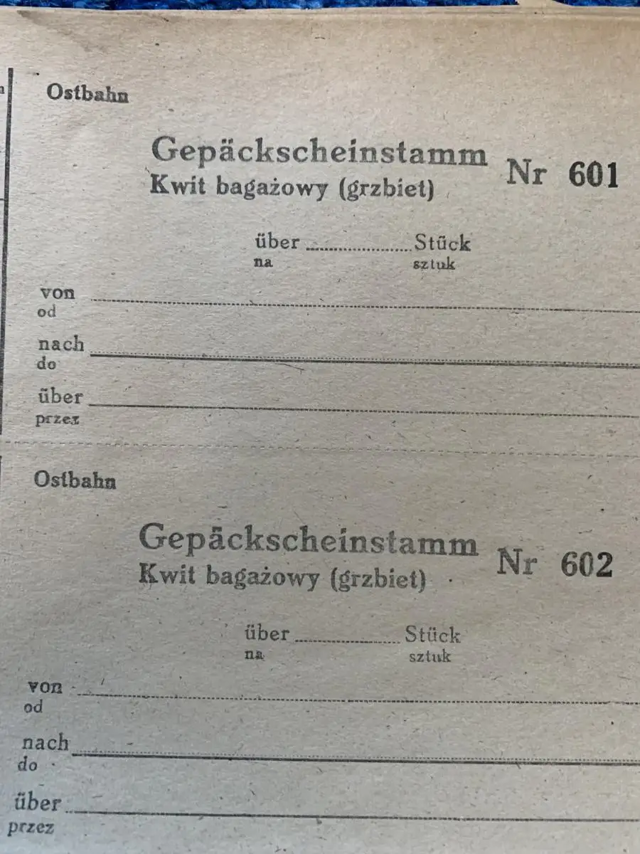 Generalgouvernement: Ostbahn: Formular Gepäckscheinstamm