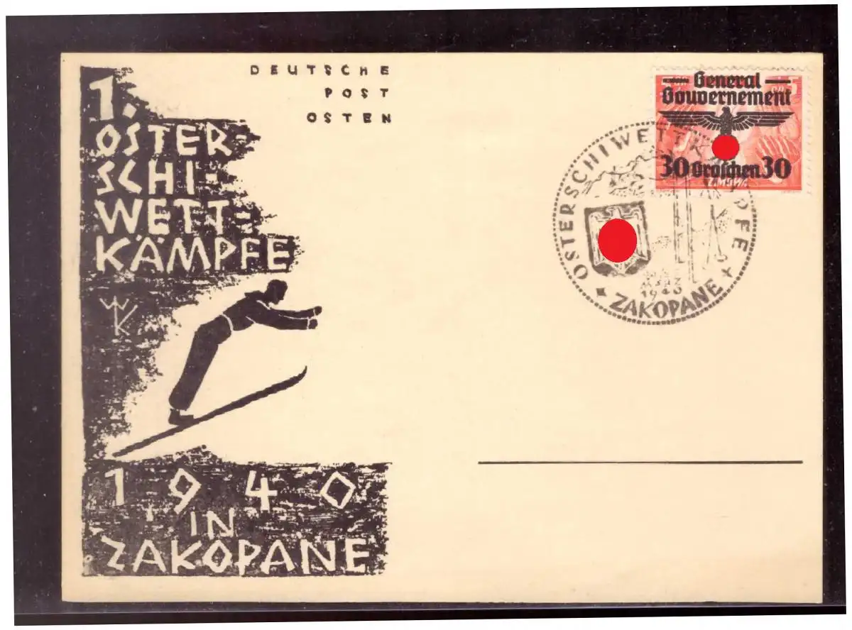 GG (020792) WKII 1. Osterschi- Wettkämpfe 1940 in Zakopane blanco gestempelt mit Sonderstempel 2