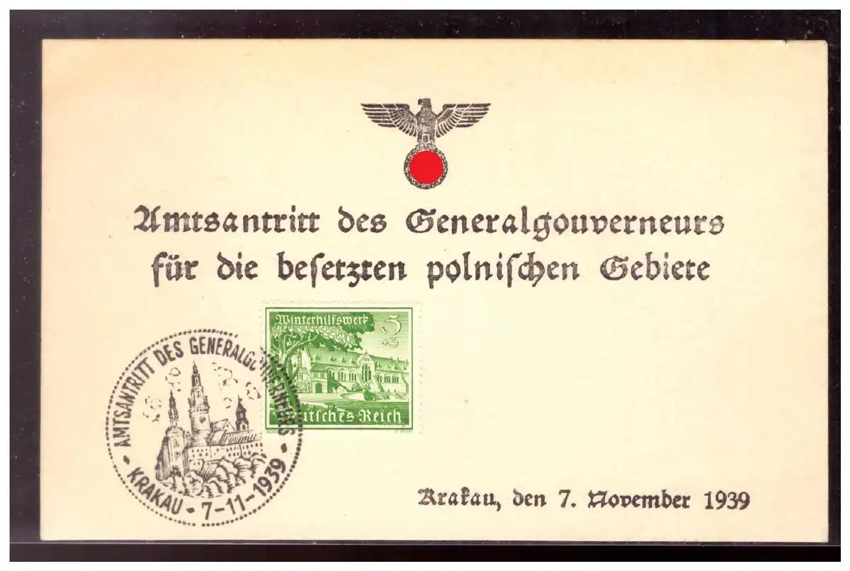 Dt.- Reich GG (020793) Propagandakarte Amtsantritt der Generalgouverneuers für die besetzten polnischen Gebiete, gest