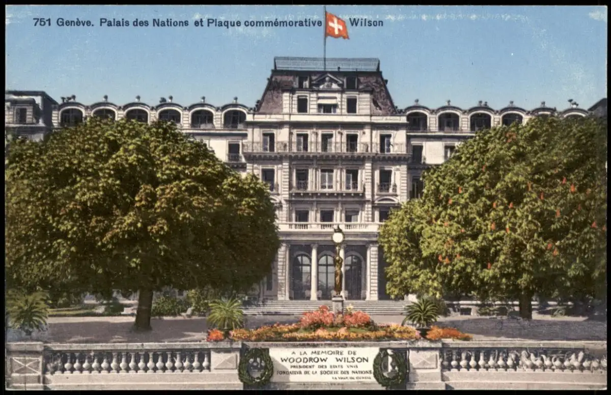 Genf Genève Palais des Nations et Plaque commémorative Wilson 1920