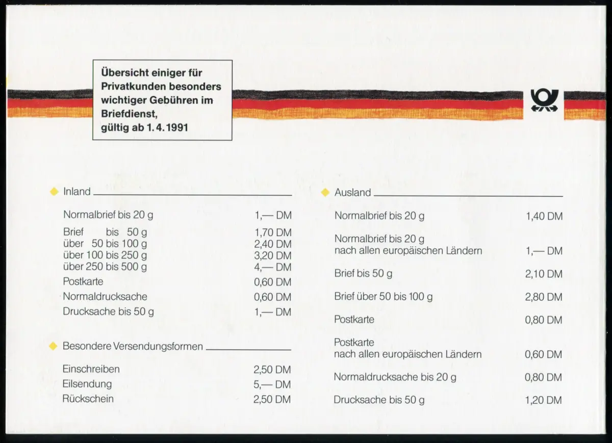 Geschenkheftchen der Post 1991, innen Marken-10er Block LINKS eingeklebt