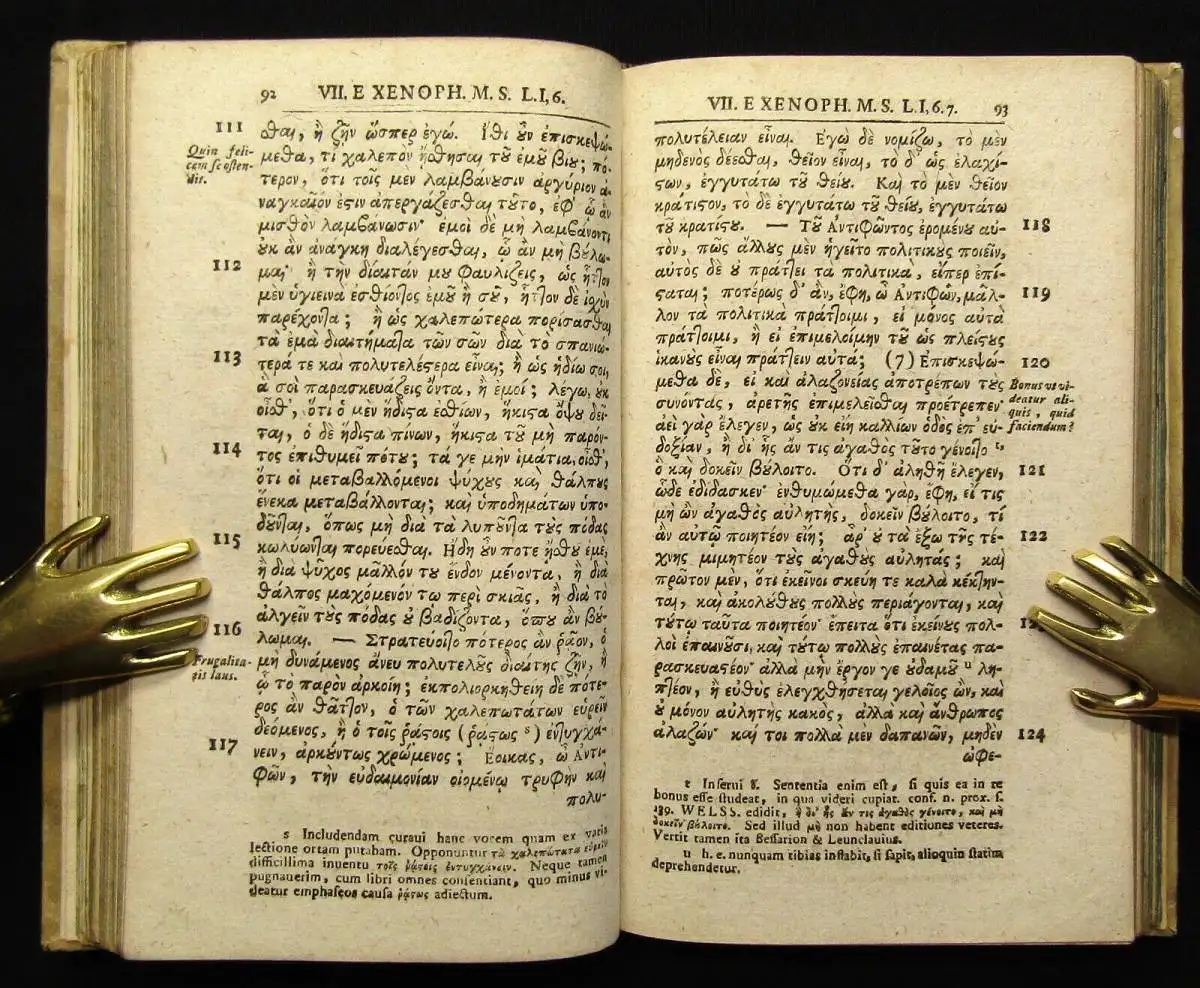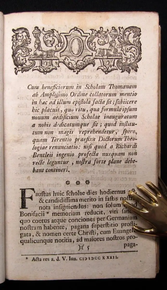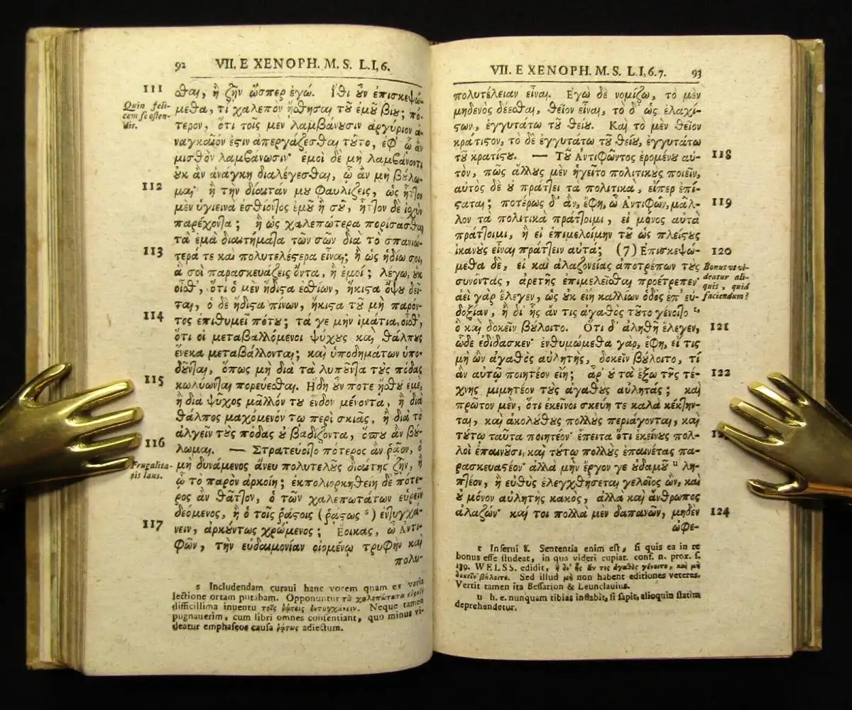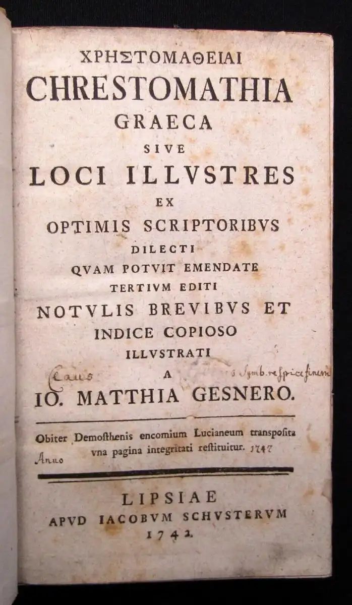 Text in der Einführung latainisch. Haupttext in griech. Sprache. Johann Matthias Gesner, latinisiert auch Jo. Matthias Gesnerus war ein Pädagoge, klassischer Philologe und Bibliothekar. Von 1730 bis 1734 wirkte er als Rektor der Thomasschule zu Leipzig. -