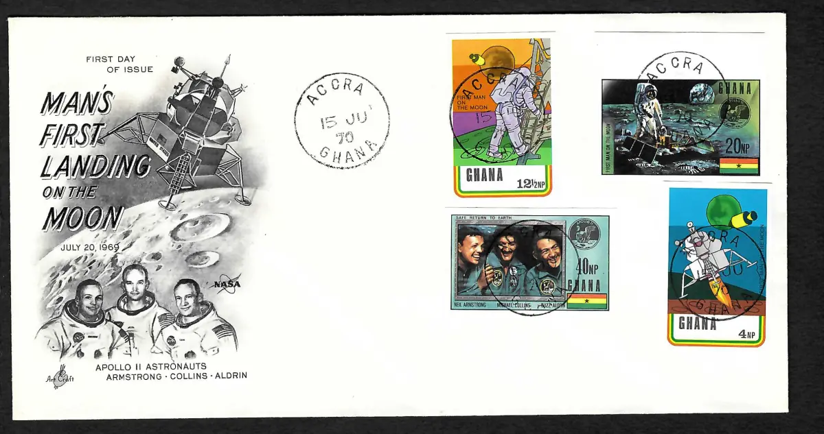 Ghana 1970: Apollo 11 Astronauts: Armstron, Collins, Aldrin, FDC