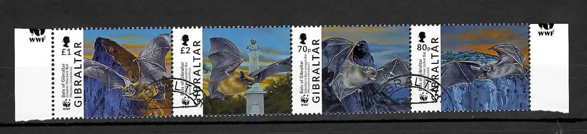 Gibraltar: Fledermäuse, Bent-winged Bat, gestempelt