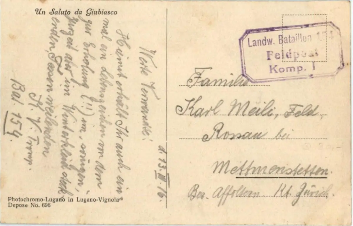 Danke. Alles Bestens. Können Sie mir allenfalls mitteilen, aus welchem Jahr die Postkarte stammt? Besten Dank.