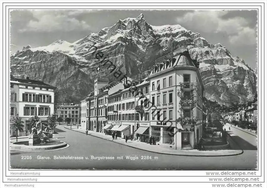 Glarus - Bahnhofstrasse und Burgstrasse mit Wiggis - Foto-AK