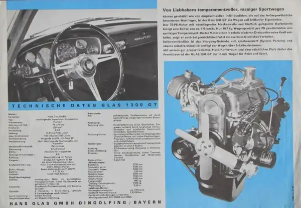 Glas 1300 GT Grand Tourisme Modellprogramm 1963 Automobilprospekt (5724)