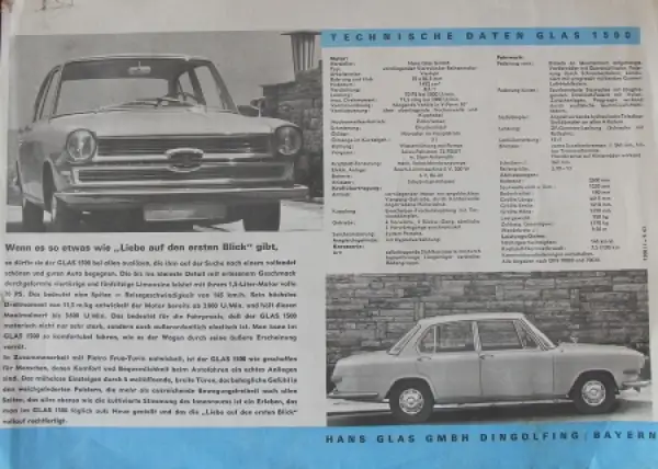 Glas 1500 Modellprogramm 1963 "Profiliert in Leistung" Automobilprospekt (5804)