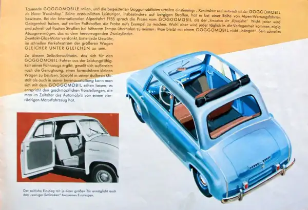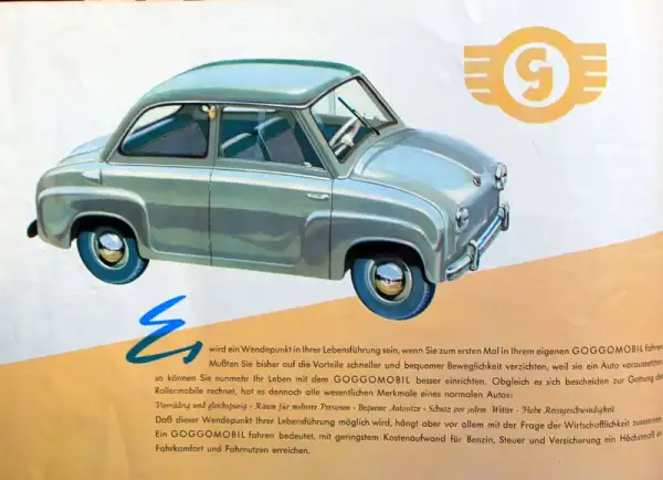 Glas Goggomobil Modellprogramm 1955 "Wendepunkt der Lebensführung" Automobilprospekt (3598)