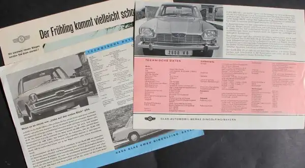 Glas Modellprogramm 1965 drei Automobilprospekte (5721)