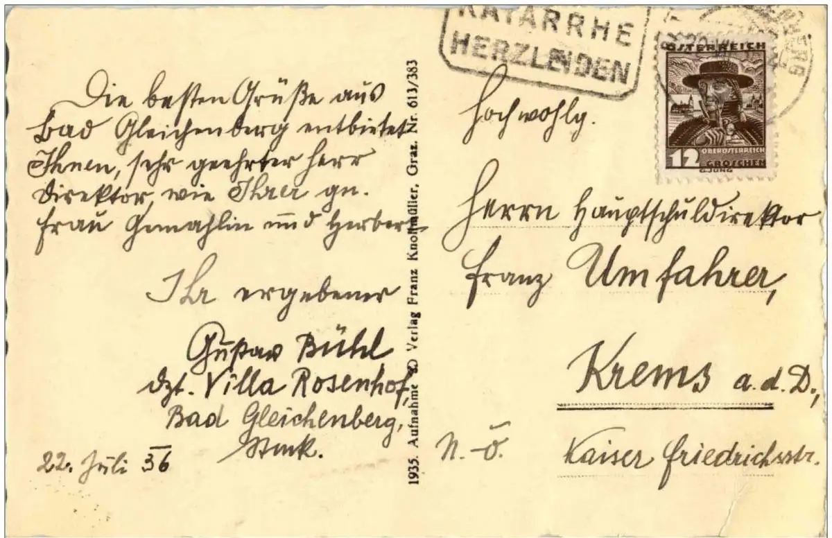 Danke. Alles Bestens. Können Sie mir allenfalls mitteilen, aus welchem Jahr die Postkarte stammt? Besten Dank.