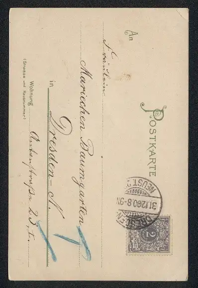 alte Ansichtskarte, gelaufen 1900, Eckknick li. oben, guter Zustand
