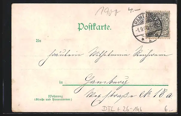 alte Ansichtskarte, gelaufen 1900, guter Zustand