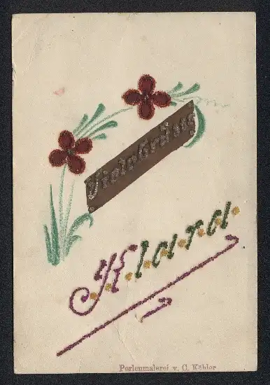Glitzer-Perl-AK Viele Grüsse von Klara, Blumen mit Glitzer-Perlen