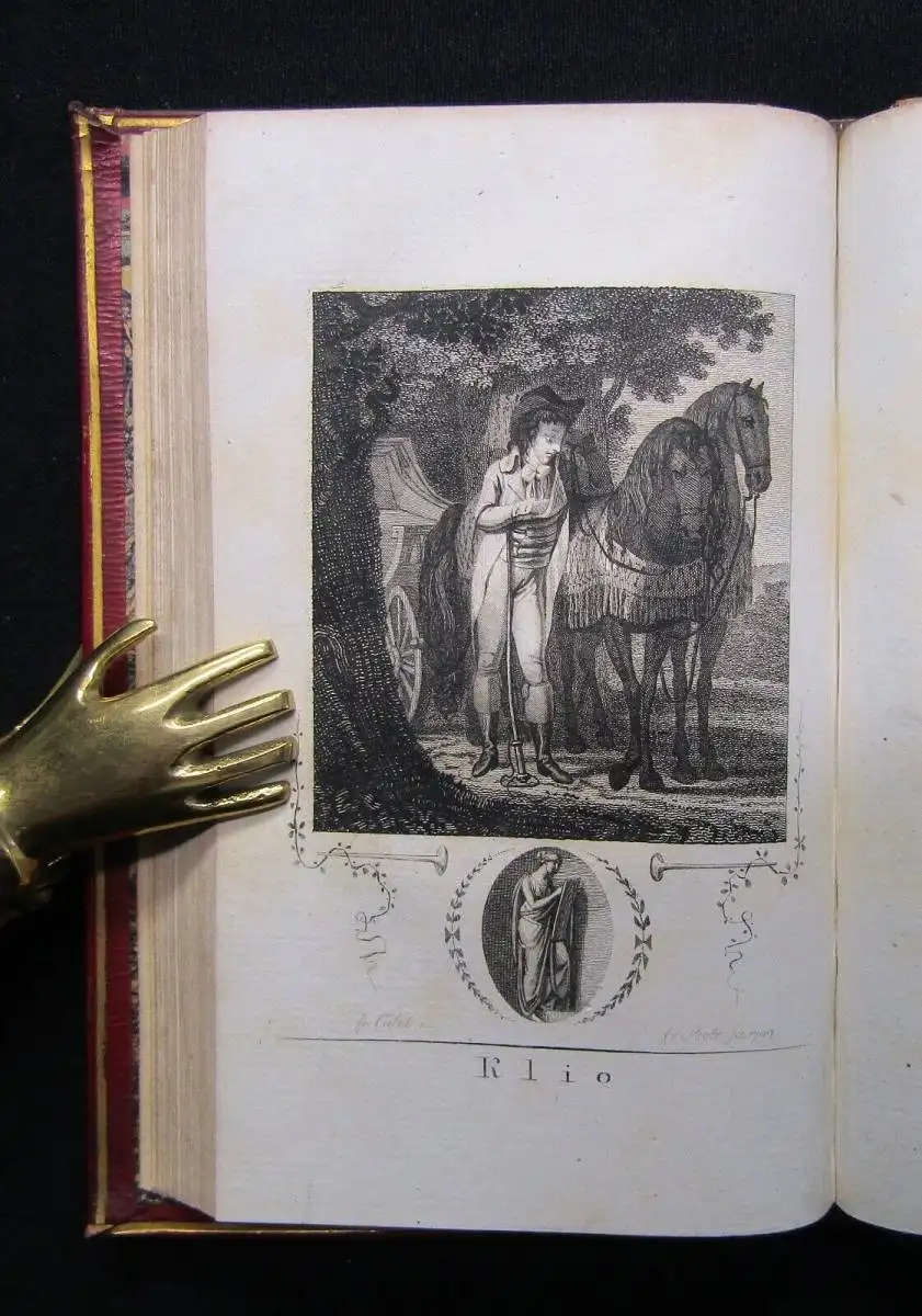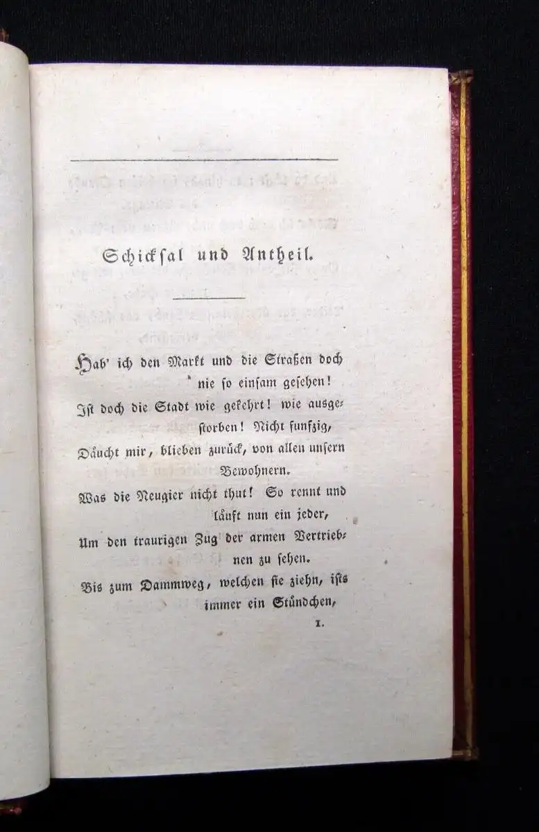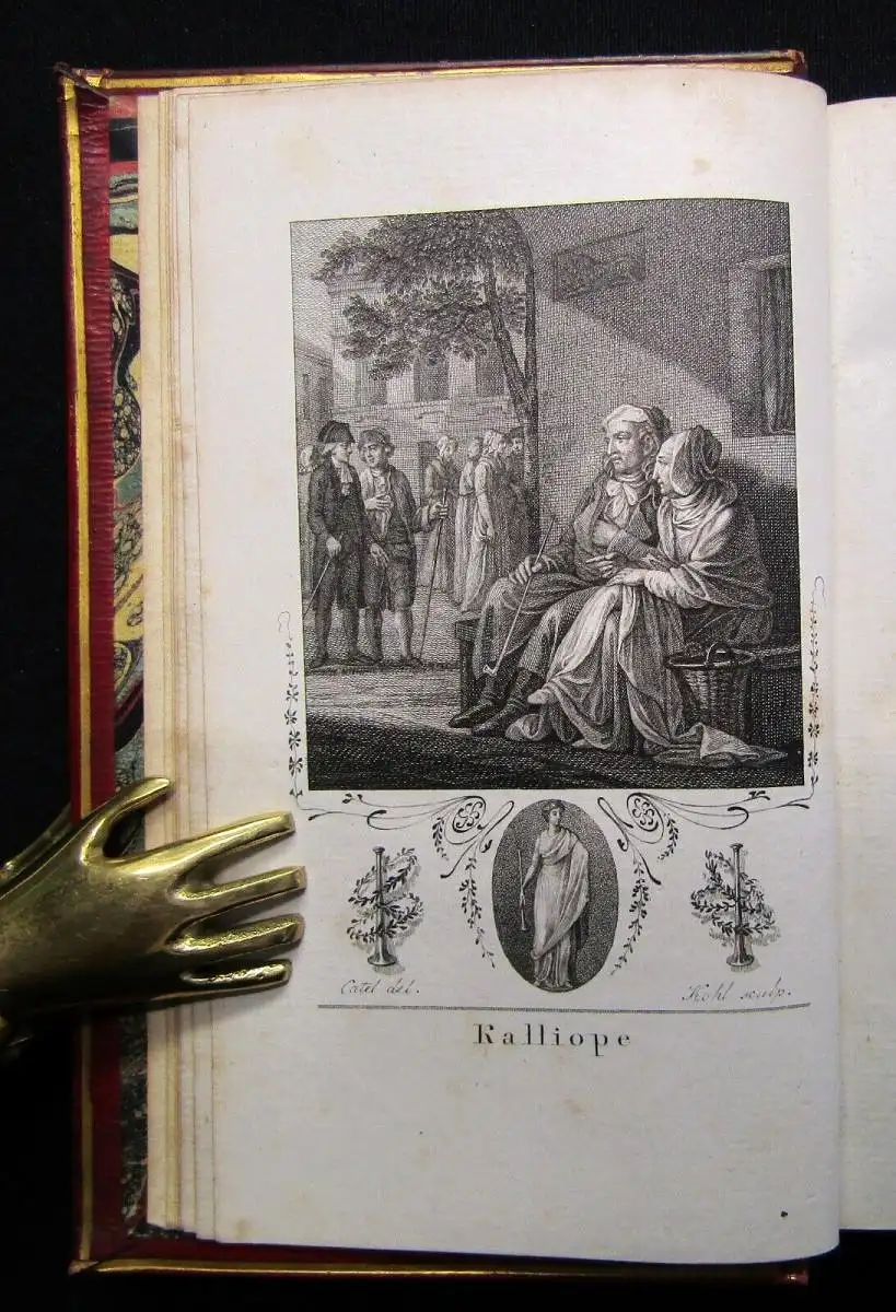 Zweite Ausgabe (die erste AUsg. abgedruckt im Taschenbuch auf das Jahr 1798 bei Vieweg in Berlin) mit den hübschen Kupfern von Kohl und Bolt nach Franz Catel. Vorderer Spiegel mit Exlibris von James John und Sophia Holroyd. J.J. Holroyd war Autor und Übersetzer zeitgenössischer deutscher Literatur u.a. Lessing. ins Englische.