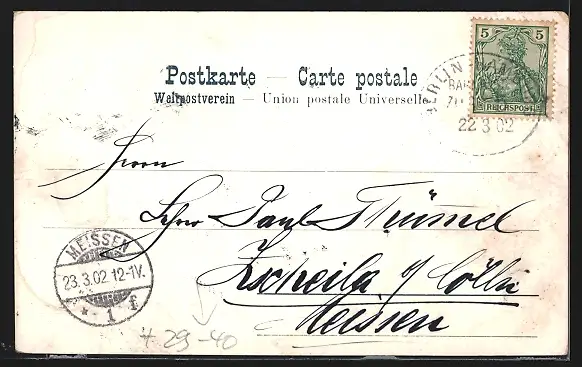 alte Ansichtskarte, gelaufen 1902, Eckknick li. oben, guter Zustand