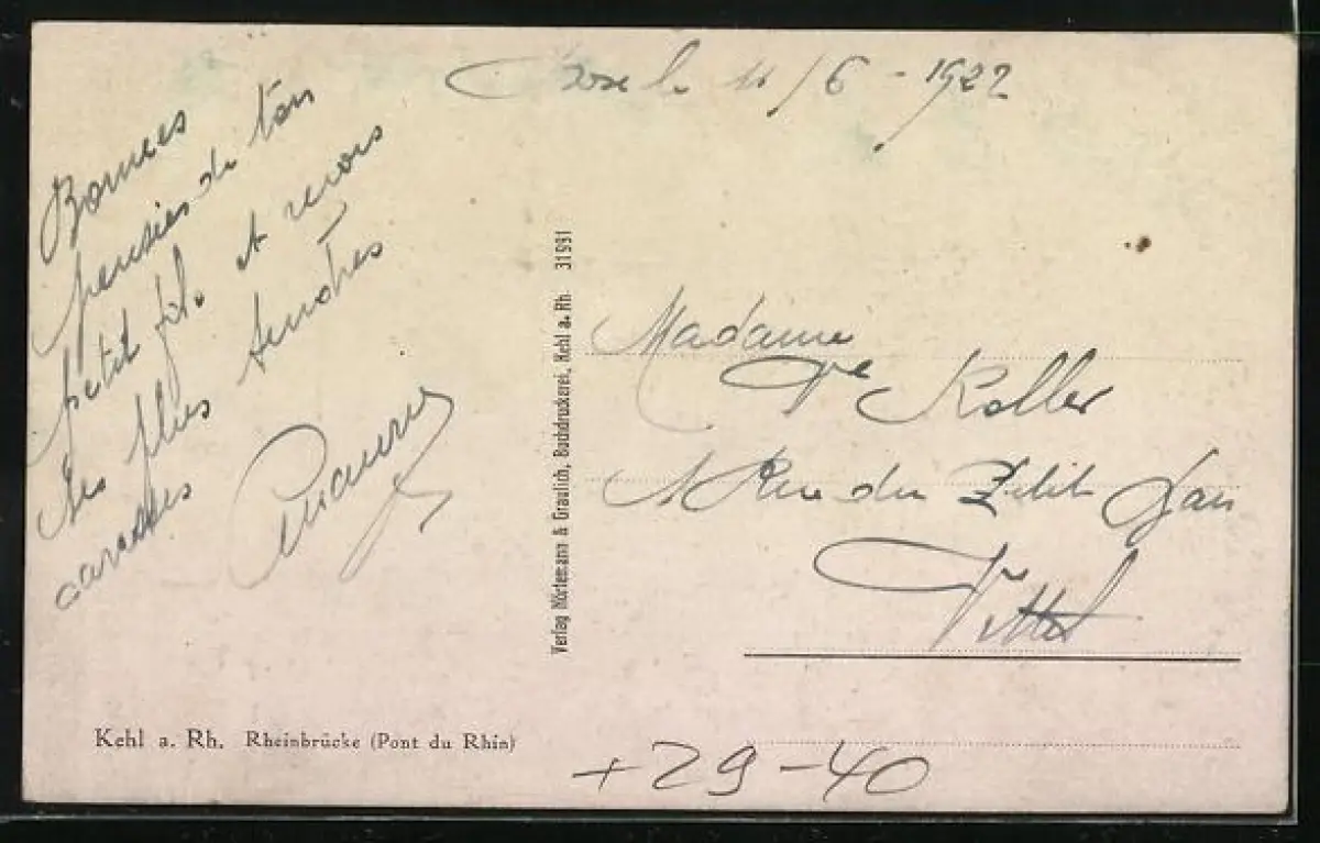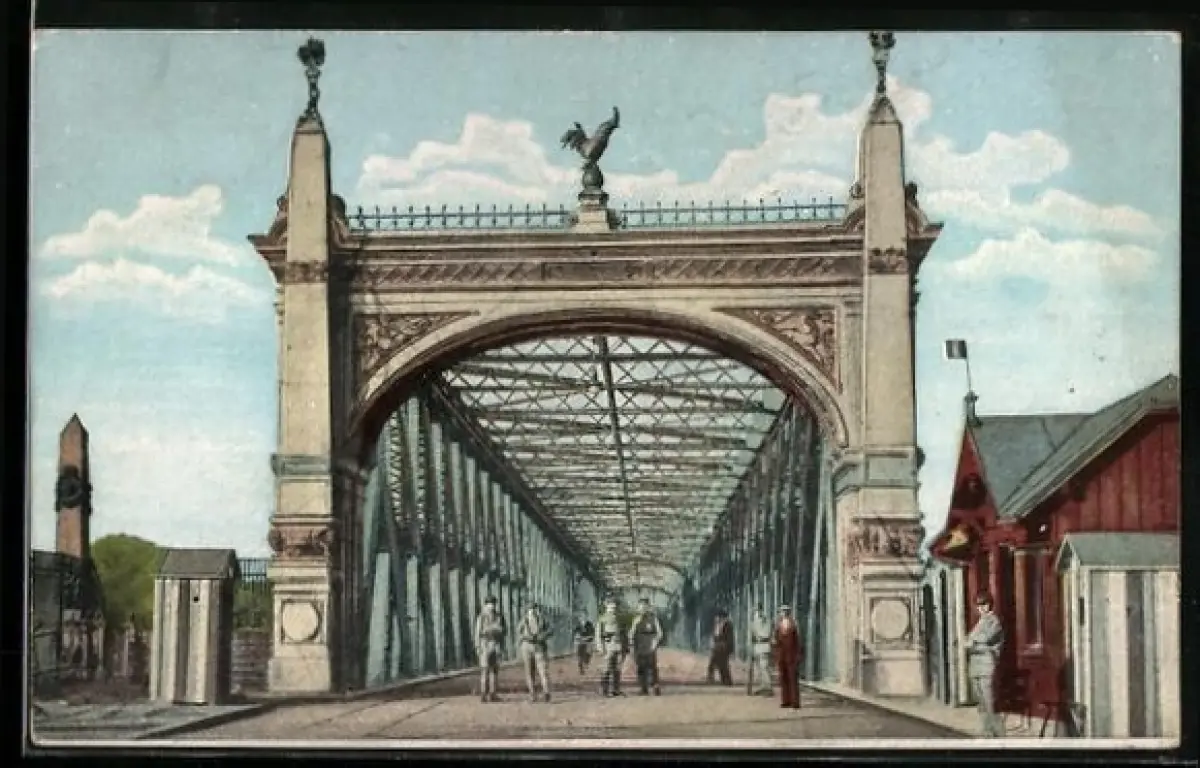 Goldfenster-AK Kehl a. Rh., Rheinbrücke