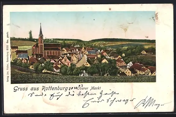 Goldfenster-AK Rottenburg / Bayern, Oberer Markt mit Kirche