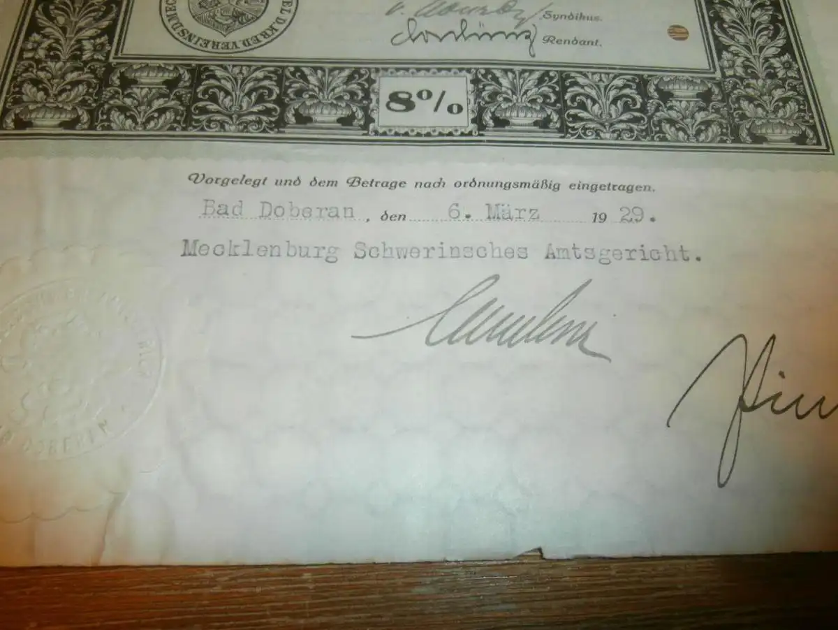 Goldpfandbrief 50 Goldmark Bad Doberan / Rostock 1929, Ritterschaftlicher Kreditverein , Mecklenburg , Pfandbrief , Gold