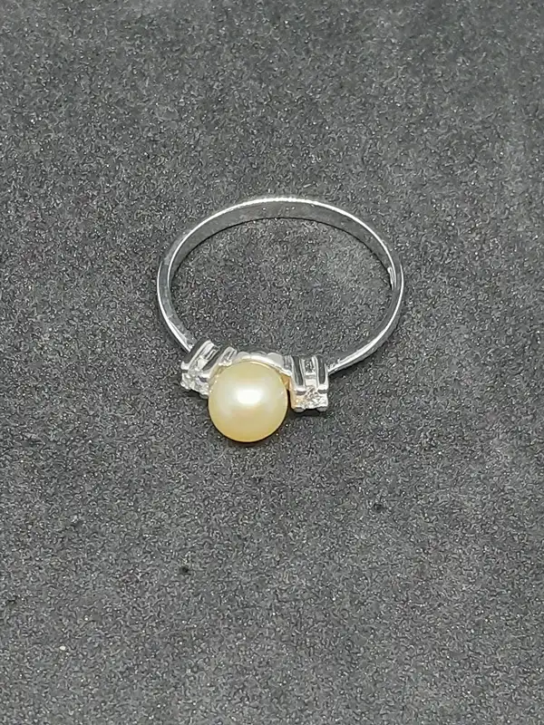 Goldring mit einer Perle & Diamanten - 14 Karat - 585 Echtgold - Ring - Goldring