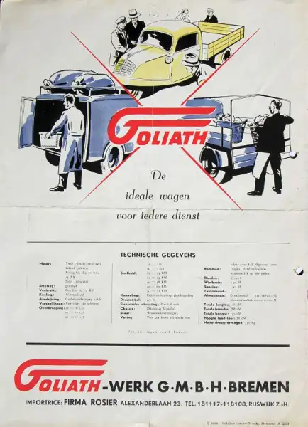 Goliath Dreiradwagen Rosier Modellprogramm 1950 "Die zich zelf betaalt" Automobilprospekt (7841)