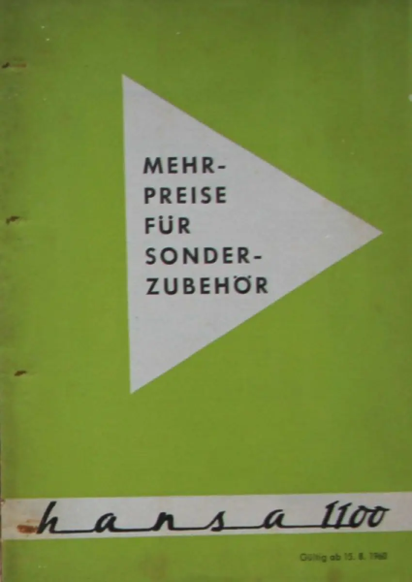Goliath Hansa 1100 Modellprogramm 1960 Sonderzubehörpreisliste (10101)