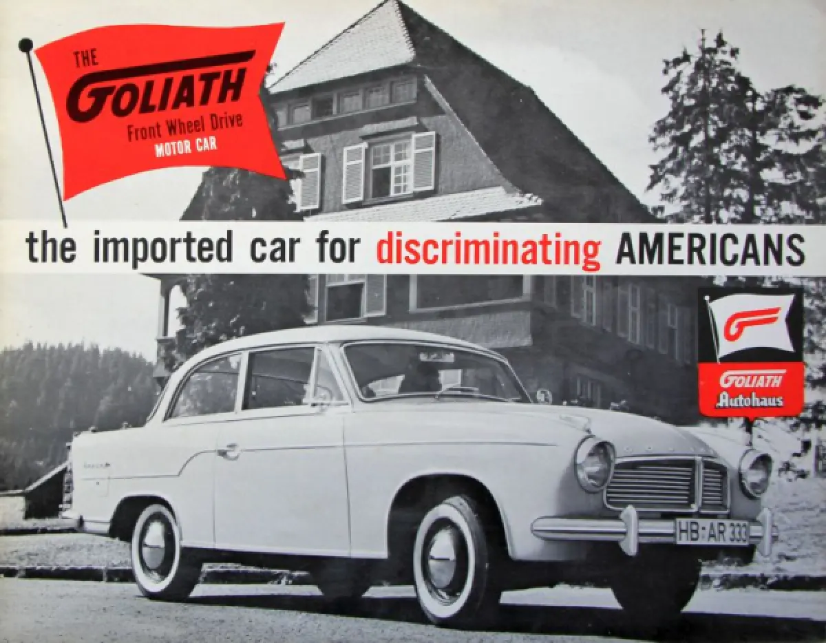 Goliath Modellprogramm 1956 "For discriminating Americans" Automobilprospekt (10656)