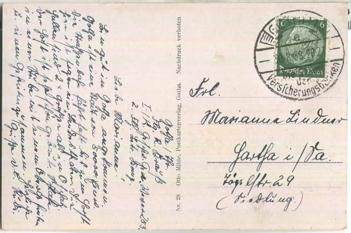 Gotha - Schloss mit Ehrenmal - Verlag Otto Milde Gotha - leichte Gebrauchsspuren (E91793) gel. 1938