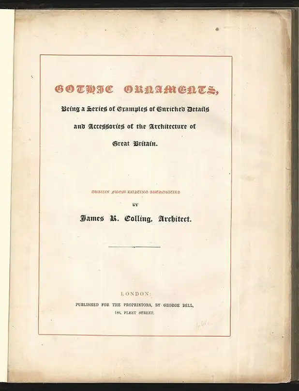 ArtikeldetailsGothic Ornaments. Being a Series of Examples of Enriched Details and Accessories of the Architecture of Great Britain. COLLING, James K[ellaway].