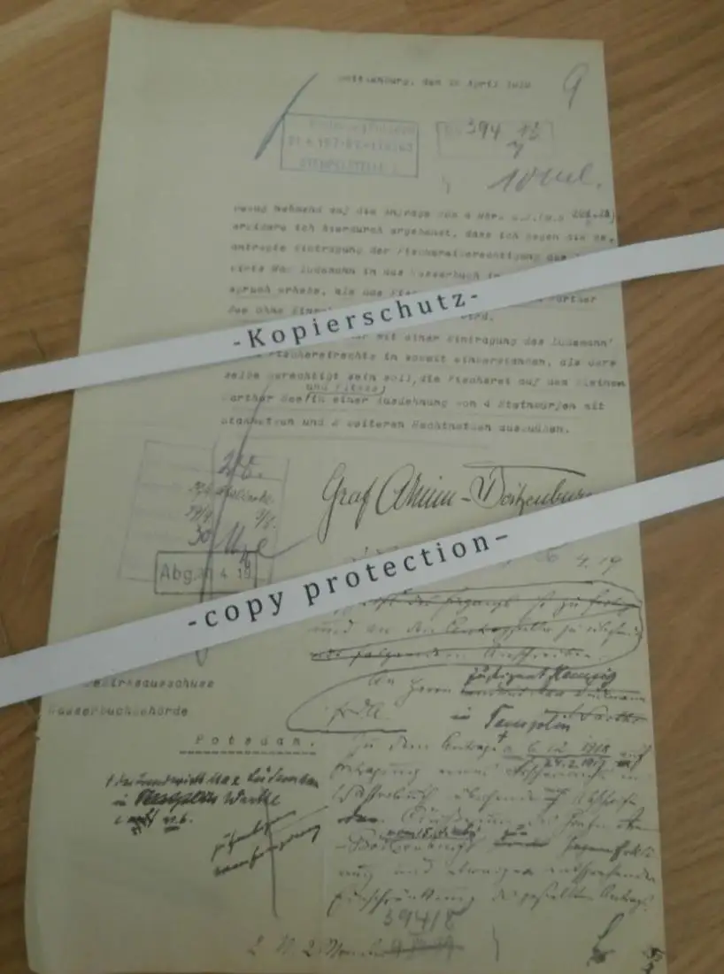 Graf Arnim-Boitzenburg , 1919 , altes Dokument , Regierung , Boitzenburg , Fischerei , Autograph , Uckermark !!!