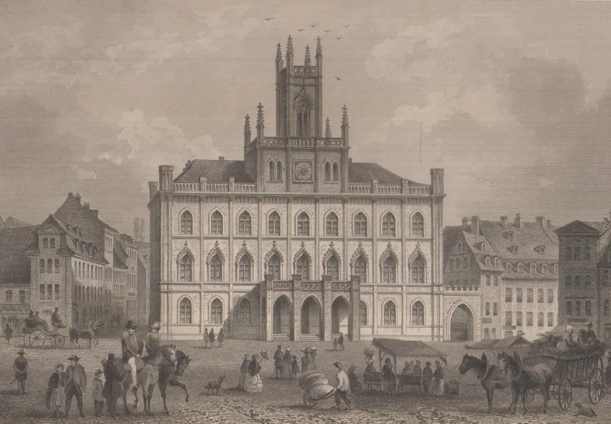 Bemerkungen: Zustand: altersbedingt leicht fleckig, Ränder leicht gebräunt // Stahlstich, mittig betitelt. Von J. Richter nach L. Rohbock. Bildformat 11,0 x 17,0 cm. Aus: Original-Ansichten der historisch merkwürdigen Städte in Deutschland Dieses Werk ist eine Sammlung von detailreichen Illustrationen und Beschreibungen, die bedeutende Städte Deutschlands in ihrer historischen und architektonischen Besonderheit darstellen. Es wurde im 19. Jahrhundert veröffentlicht und richtet sich an ein Publikum, das sich für die kulturelle und bauliche Geschichte Deutschlands interessiert. Das Buch verbindet künstlerische Darstellungen mit erklärenden Texten, um ein umfassendes Bild der historischen Bedeutung und des damaligen Erscheinungsbildes deutscher Städte zu vermitteln. Es war Teil der romantischen Bewegung, die sich auf die Wertschätzung und Erhaltung historischer Städte und ihrer Geschichten konzentrierte.