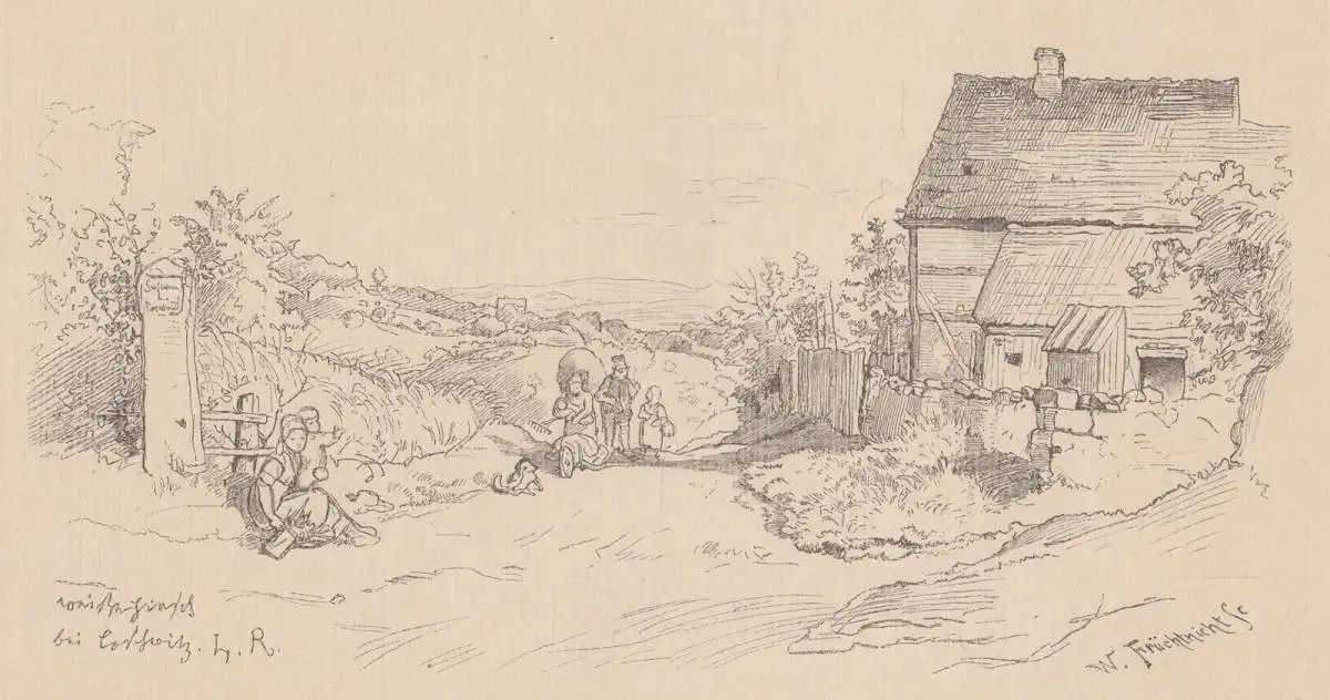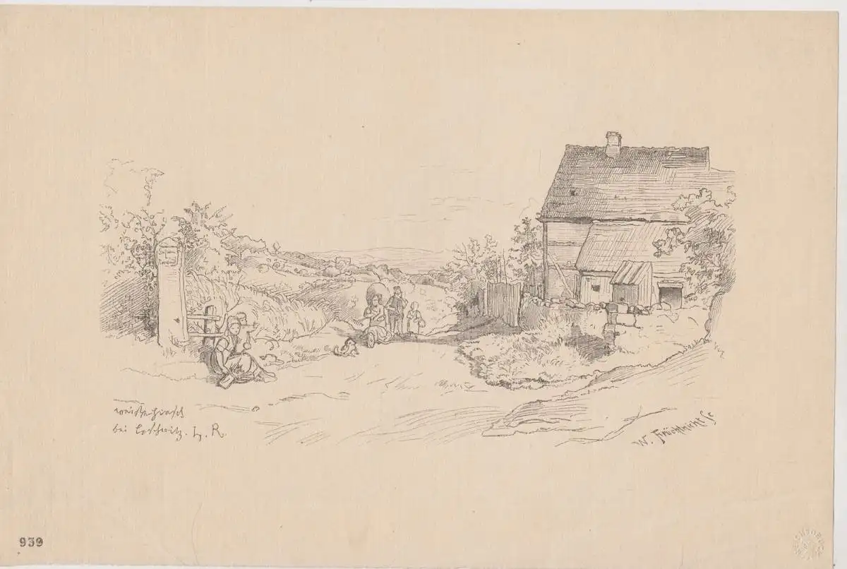 Bemerkungen: Zustand: Gut. Das Blatt ist altersbedingt leicht gebräunt mit leicht beriebenen Rändern // Es handelt sich um einen Facsimile-Druck einer Zeichnung von Adrian Ludwig Richter, gedruckt in der Reichsdruckerei Berlin. Adrian Ludwig Richter (1803-1884) war ein bedeutender deutscher Maler, Zeichner, Grafiker und Illustrator der Romantik. Er zählt zu den bekanntesten Vertretern der Spätromantik und des Biedermeier in der deutschen Kunstgeschichte.