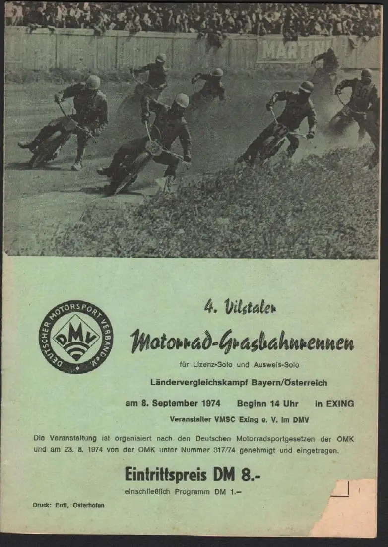 Grasbahnrennen Vilstal 1974 , Exing , Speedway , Programmheft / Programm / Rennprogramm !!!
