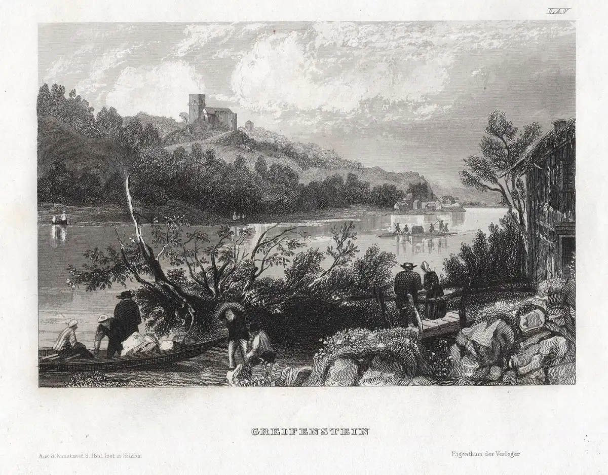 Greifenstein Donau Gesamtansicht Original Stahlstich. Echter Stahlstich, BI um 1850