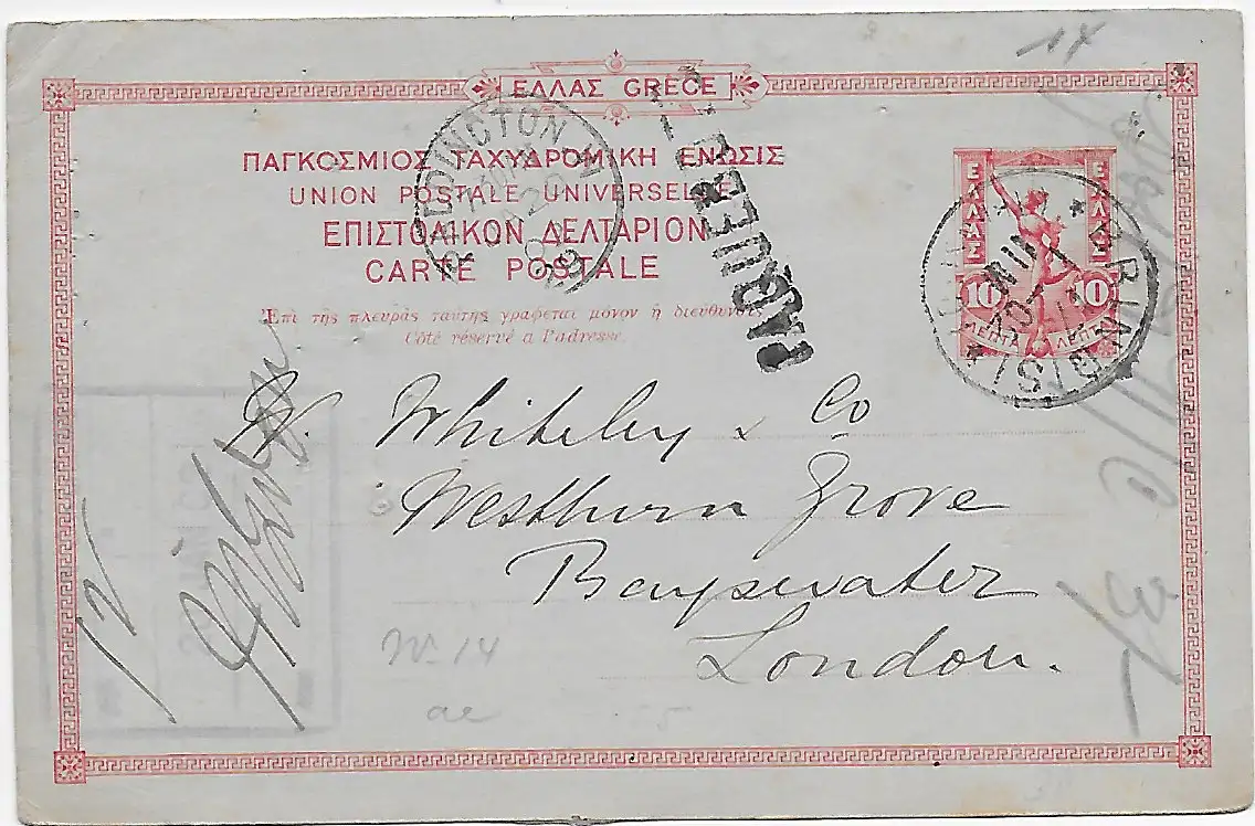 Griechenland Korfu Schiffspost via Brindiisi, Paquebot nach London, 1902