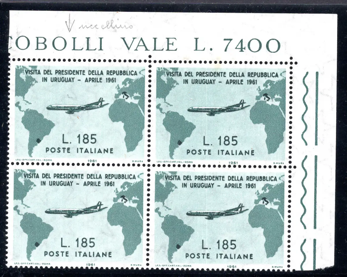 MNH - Vollgummi - - Gronchi Lire 185 Nr. 820 Viertelblattwinkel, ein Exemplar mit verschiedenen Übertragungsarten Möwe über dem Flugzeug, neu perfekt mit Vollgummi - Schön und ungewöhnlich Cod. 2515/WEB